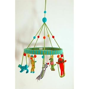 This gorgeous hand-made mobile options 5 animals(lion, zebra, giraffe, monkey, elephant) in playful poses. Diameter is 13 " and has an regulateable length of 78". The length modifys the use of a ball that slides up and down the string. Blabla's collection is designed via Florence Wetterwald and knitted via Peruvian artisans. Everything is constructed from natural fibers of exceptional quality grown in Peru, making the line irresistibly delicate and cuddley.. ... Read more Jungle Mobile