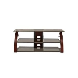 Real timber with mocha finish 8mm/5mm tea coloured tempered safety glass Chrome cylinder glass supports Accommodates most LCD / Plasma TV?s up to 65-inch TV weight capacity: 150-pound
