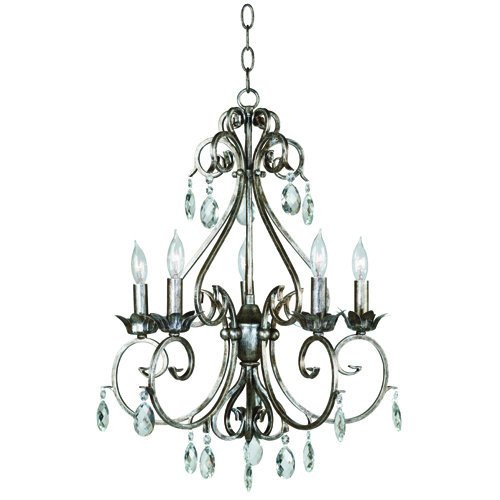 Order Kenroy Home 91345WS Antoinette 5-Light Chandelier, Weathered Silver with Glass Accents Now!