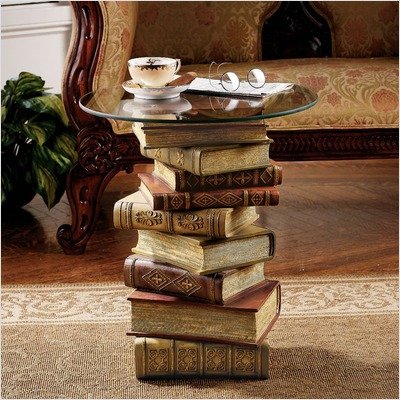 NG32069 What's more appropriate in an English-style library than a tower of artistically stacked books? If you have a penchant for the literary, add our Toscano-exclusive table next to your favorite reading chair! Cast in quality designer resin and hand-painted in a delightful, antique patina, our unique table is sculpted 360-degrees and topped with a 0.375'' thick pencil-edged glass top to be aNG32069 What's more appropriate in an English-style library than a tower of artistically stacked books? If you have a penchant for the literary, add our Toscano-exclusive table next to your favorite reading chair! Cast in quality designer resin and hand-painted in a delightful, antique patina, our unique table is sculpted 360-degrees and topped with a 0.375'' thick pencil-edged glass top to be a... Read More
